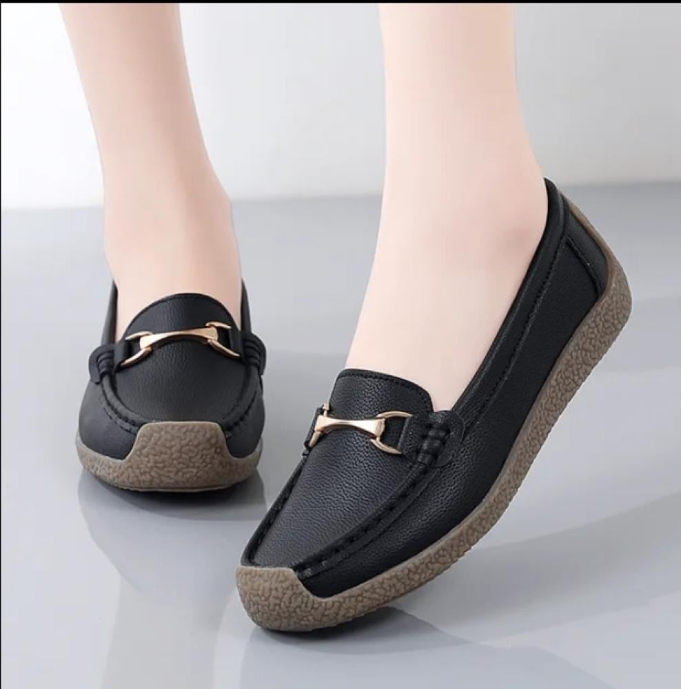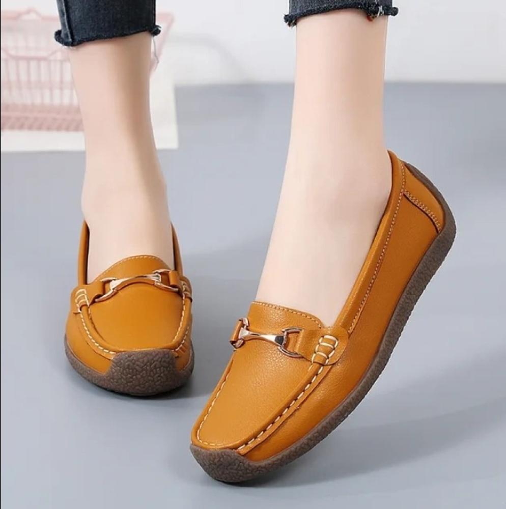 خف من الجلد الطبيعي للنساء ، حذاء بدون كعب ، حذاء قارب نسائي ، مسطح غير رسمي ، شقق جديدة ، الربيع والخريف ، حجم كبير 44