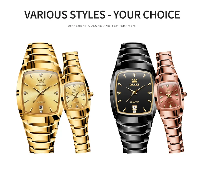 ساعة أوليفس-ساعة كوارتز مقاومة للماء للرجال والنساء ، ساعة يد زوجين ، حزام من فولاذ التنغستن ، تاريخ ، رومانسي ، فاخر ، موضة ،