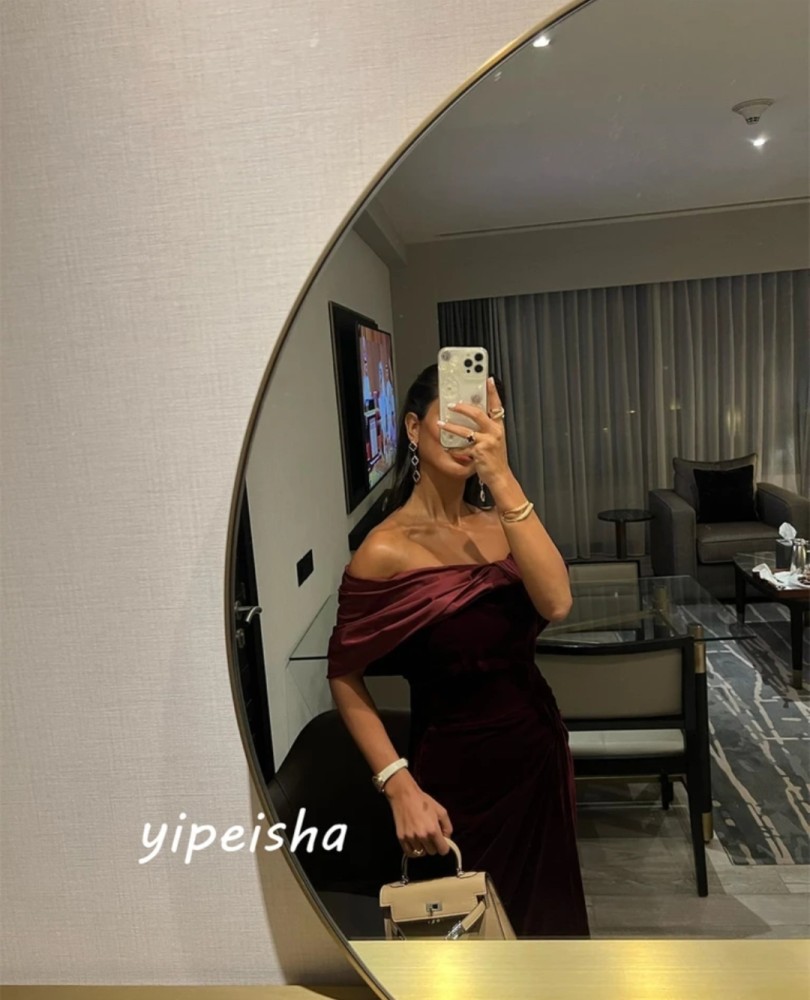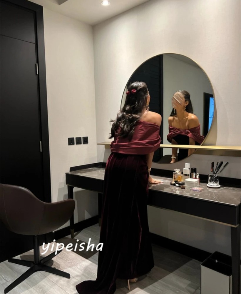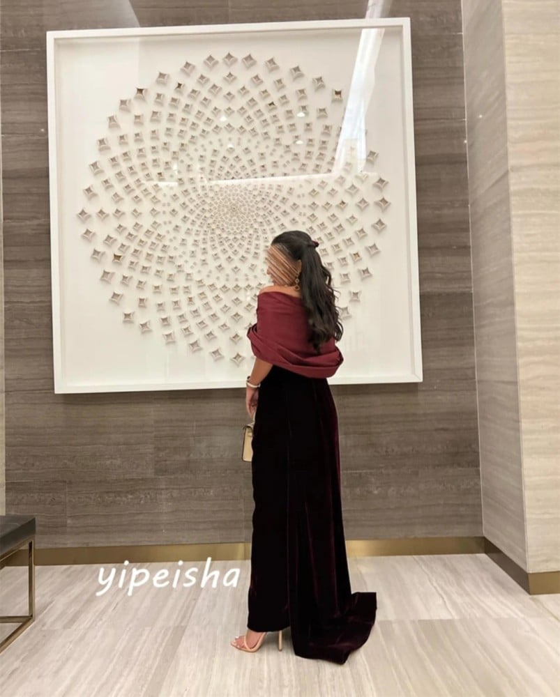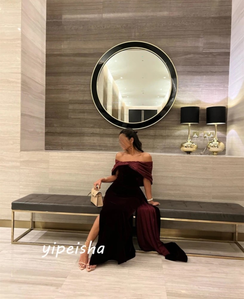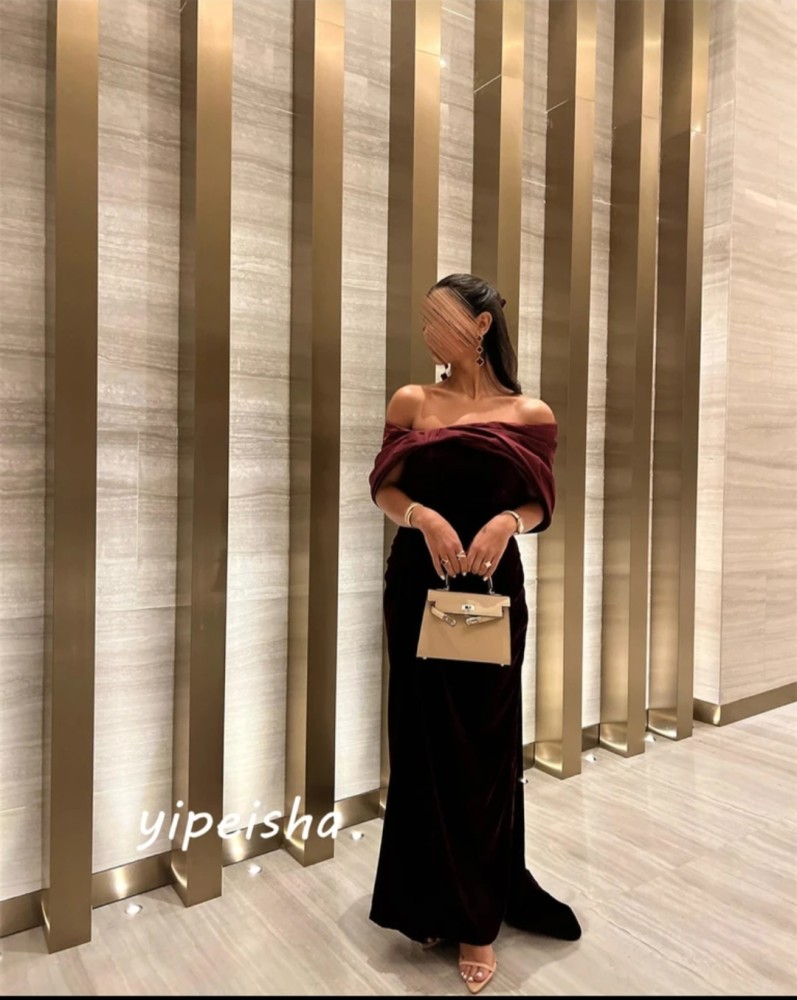 فستان سهرة أنيق مكشوف الكتفين مع اقواس على شكل خط اوكباسى رسمى طول الأرض فستان رائع