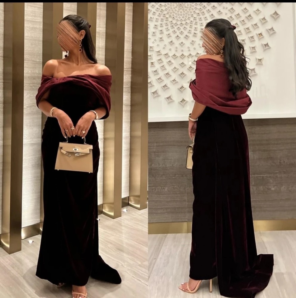 فستان سهرة أنيق مكشوف الكتفين على شكل خط اوكباسى رسمى