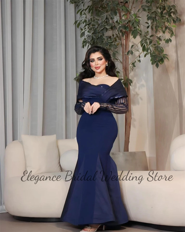 فستان نسائي بأكمام طويلة مكشوف الأكتاف ، فستان حفلة موسيقية عاري الظهر ، فساتين سهرة ساحرة ، وهم البوق