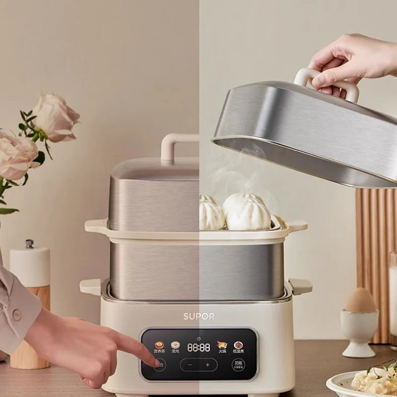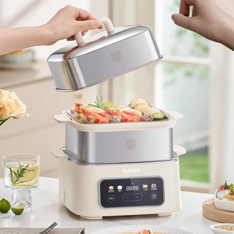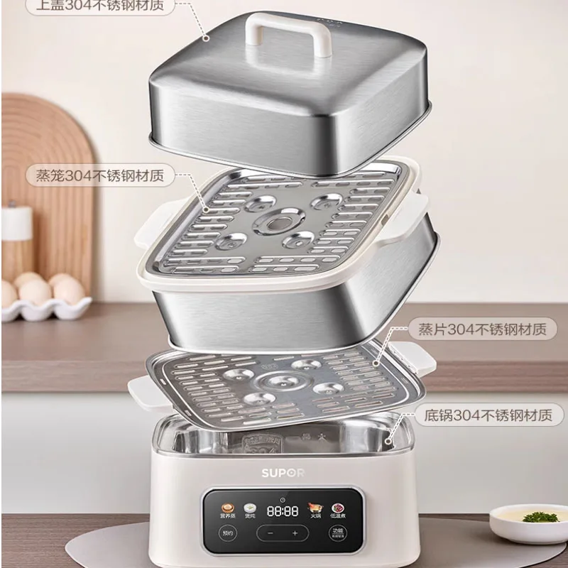 مبخرة كهربائية متعددة الوظائف مع وعاء مدمج ، آلة طهي منزلية ، 3 طبقات ، حجز ذكي