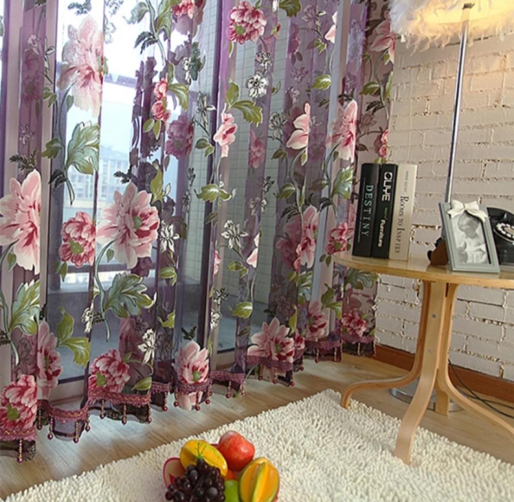 موضة الفاوانيا ستائر النافذة الستائر البيج الأرجواني تول الفاخرة شير للمطبخ غرفة المعيشة غرفة نوم