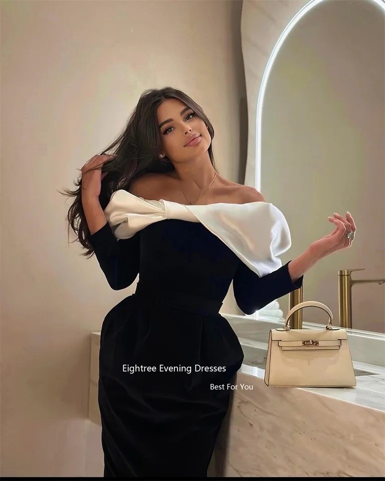 Eightree-فساتين سهرة حديثة, المملكة العربية السعودية, أبيض وأسود, أكمام طويلة, ساتان Abendkleider, دبي, فساتين مناسبة رسمية, 2023