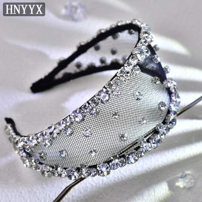 HNYYX بريق حجر الراين عقال للنساء ، طوق شعر كريستالي واسع باروكي ، إكسسوارات شعر فاخرة ، قطع شعر لحفلات الزفاف ، A43