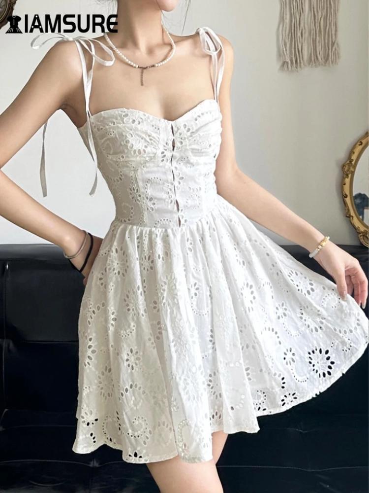 IAMSURE-فستان بفتحات على شكل حرف A للنساء ، فساتين صغيرة ضيقة بلا أكمام ، رقبة مائلة ، أزياء مثيرة وأنيقة ، صيف