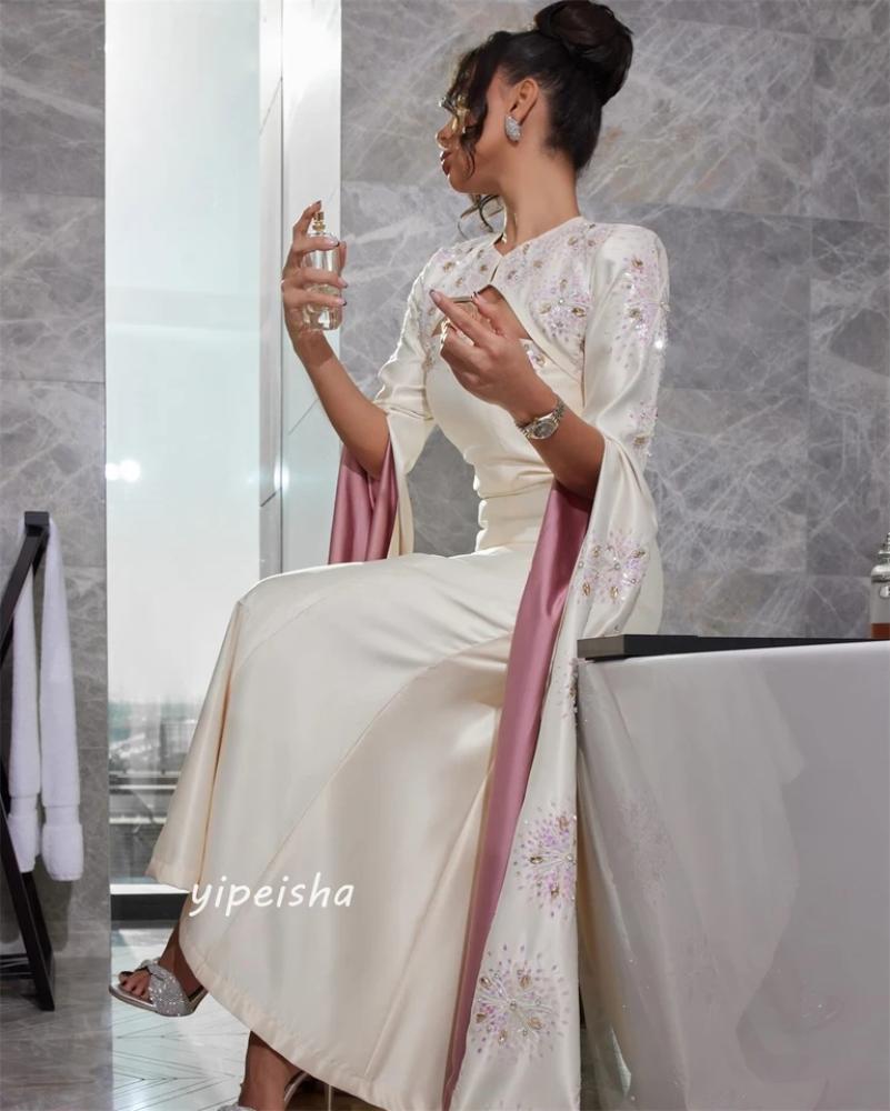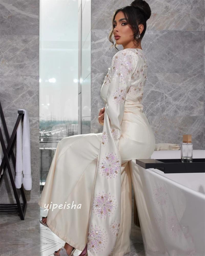 Jiayigong ثوب الساتان مع الديكور ، Quinceanera رايات ، A-line V-Neck ، مناسبة مخصصة ، فساتين طويلة الأكمام