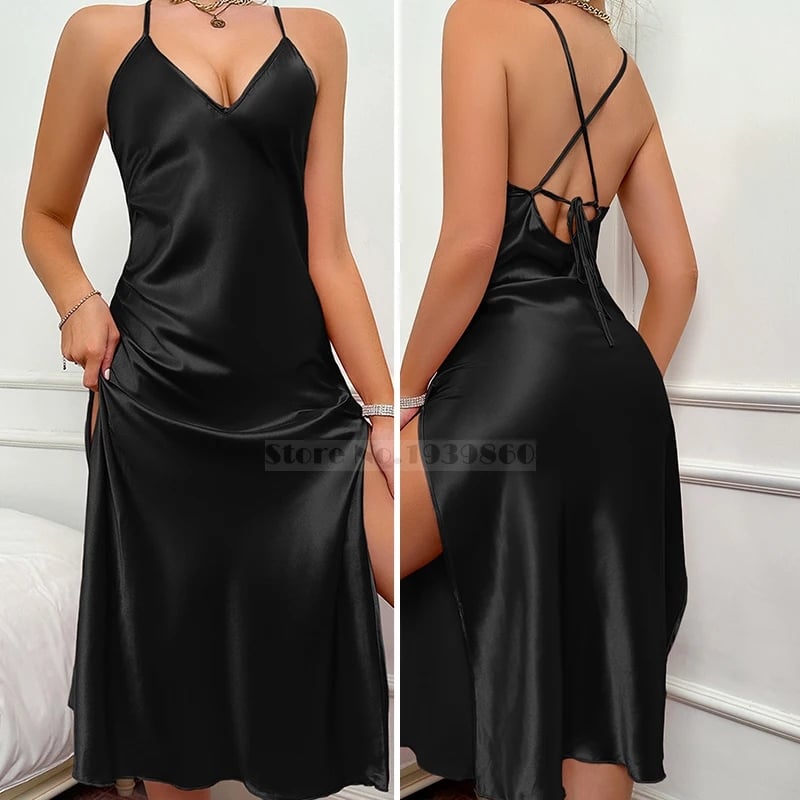 ثوب نوم نسائي بحمالات طويلة ، ملابس نوم مثيرة ، ملابس نوم منقسمة عارية الذراعين ، ملابس نوم من الساتان الحريري ، ملابس منزلية ، ملابس نوم صيفية