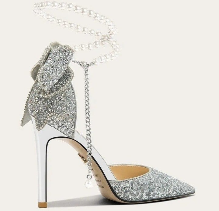 كعب عالي مسطح للنساء قوس ترتر أنيق خط لؤلؤ مع حذاء فردى فرنسى وفرنسى جديد