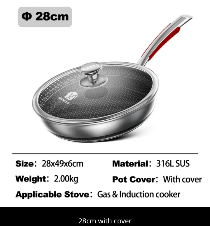 مقلاة غير لاصقة من موآي ، مقلاة غير لاصقة ، مقلاة حثية ، طبخ مطبخ ، فولاذ مقاوم للصدأ 316 لتر ، 28 في ، 30 في ، 32 في