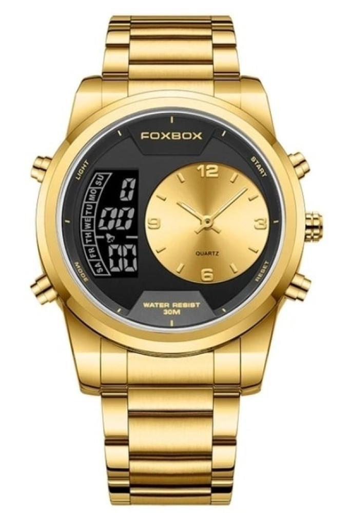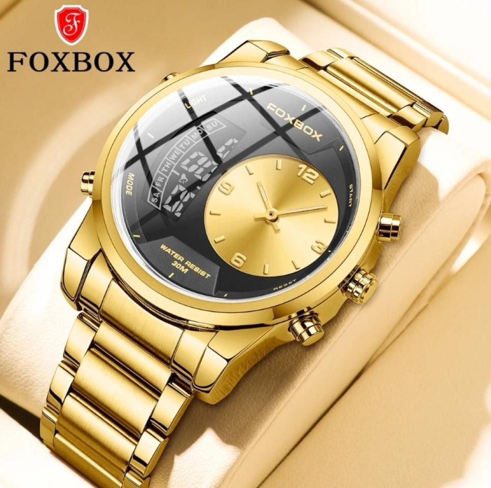 LIGE-Men ساعة كوارتز رقمية مقاومة للماء ، ساعات معصم كرونوغراف فاخرة ، ساعة رياضية غير رسمية ، موضة جديدة ، علامة تجارية Foxbox الأعلى